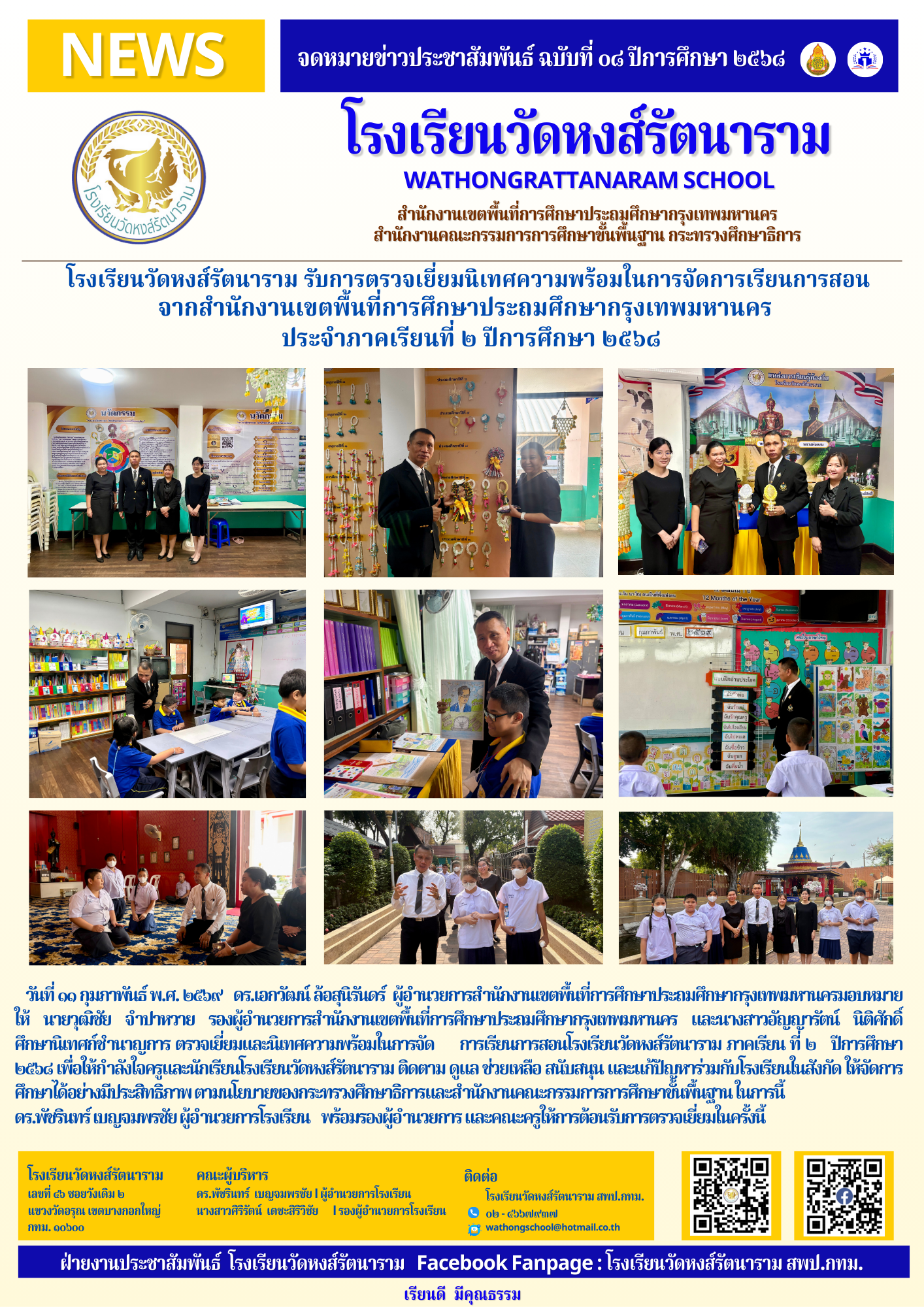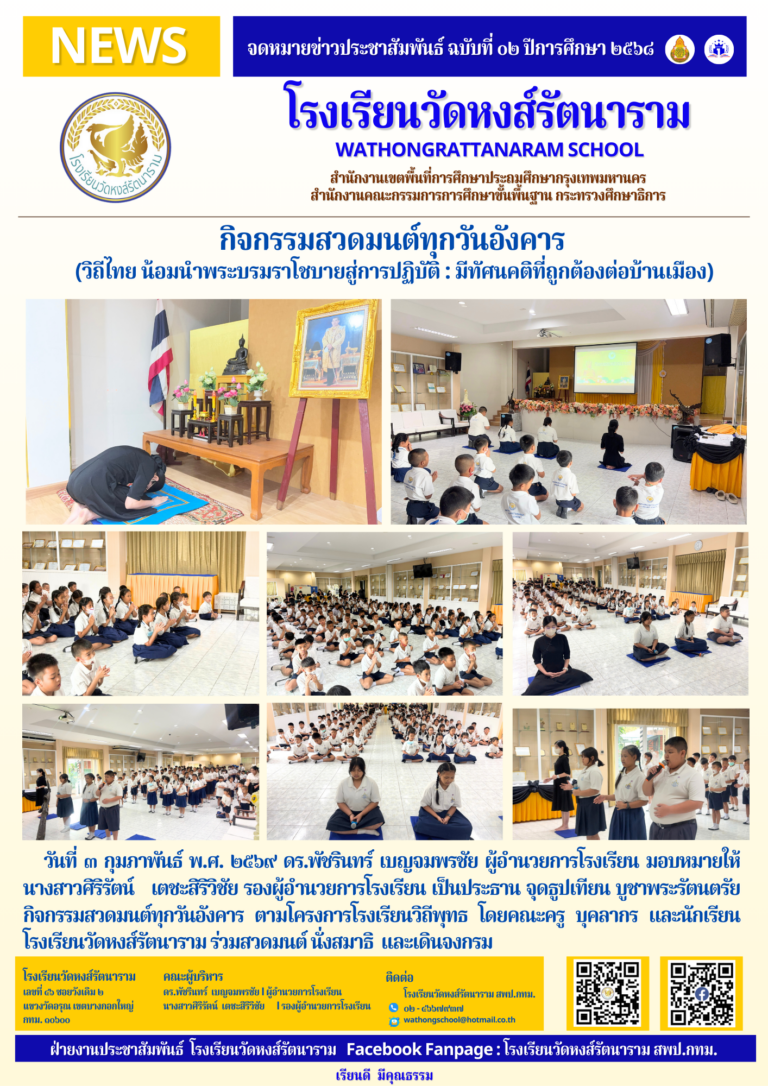2613แบบเนอร์ ประชาสัมพันธ์ สรุปผลการแข่งขัน งานศิปลหัตกรรมนักเรียนครั้งที่ ๗๑ ปีการศึกษา ๒๕๖๖ โรงเรียนวัดหงส์รัตนาราม วัดหงส์รัตนาราม วัดหงส์รัตนาราม46 ถ. วังเดิม อ.บางกอกใหญ่ จ.กรุงเทพมหานคร 10600สำนักงานเขตพื้นที่การศึกษาสพป.กรุงเทพมหานครโทร. 02-354-5252 – 59, 02-644-5247, 02-664-5495 แกลเลอรี่ ติดต่อ/ร้องเรียน โรงเรียนวัดหงส์รัตนาราม เลขที่ 46 ตำบลวัดอรุณ อำเภอเขตบางกอกใหญ่ จังหวัดกรุงเทพมหานคร 10600 เปิดทำการวันจันทร์ – ศุกร์ 8.00 – 17.00 น.วันเสาร์ 8.00 – 12.00 น.ปิดทำการในวันหยุดราชการ และวันหยุดนักขัตฤกษ์ โทรศัพท์ 0-2466-7937 โทรสาร 02-472-0876 wathongschool@hotmail.co.th